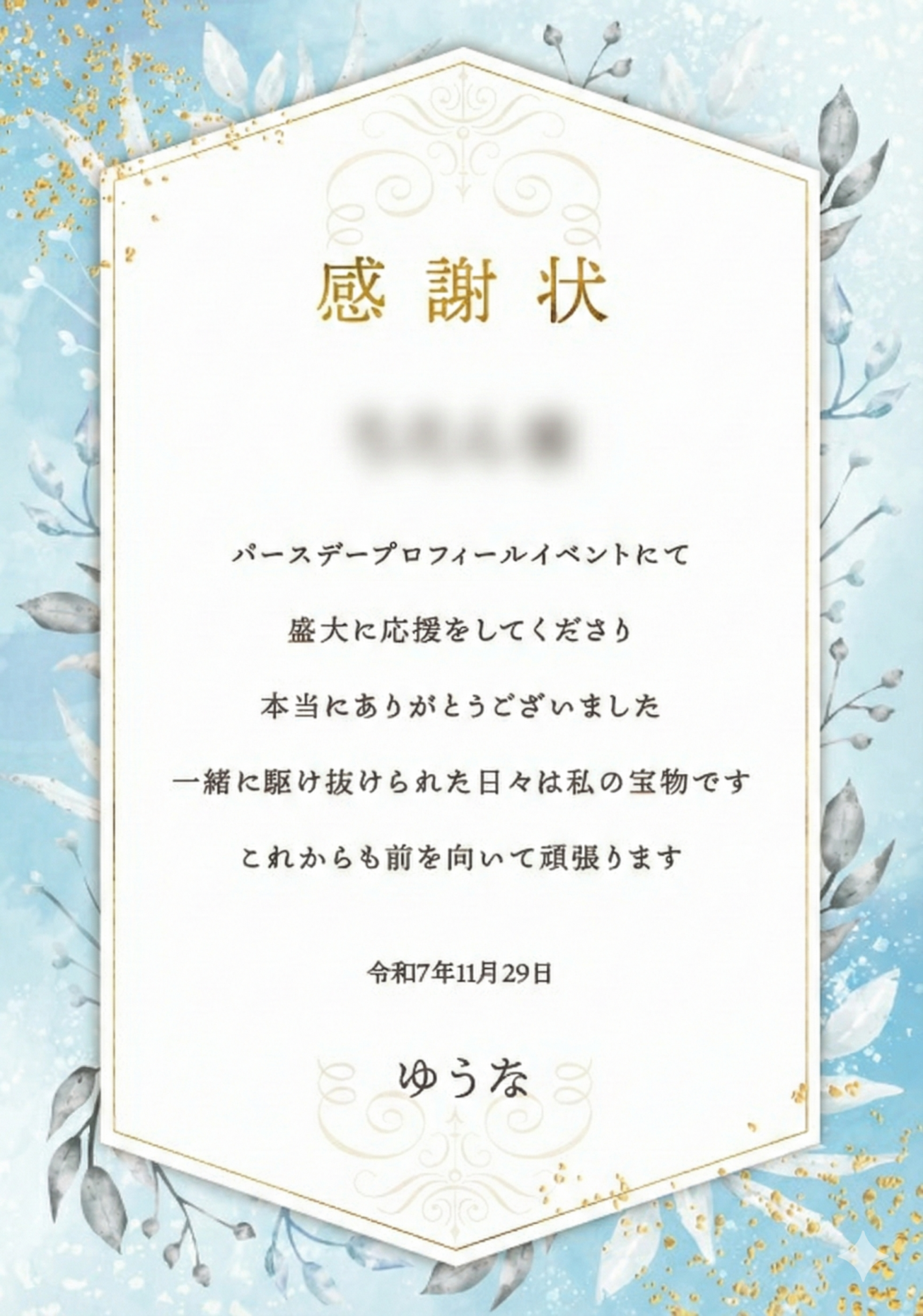 【ご利用実績】人気ライバーゆうな様のイベント特典!ファンへ贈る返礼品にはオリジナル「感謝状」がおすすめ」